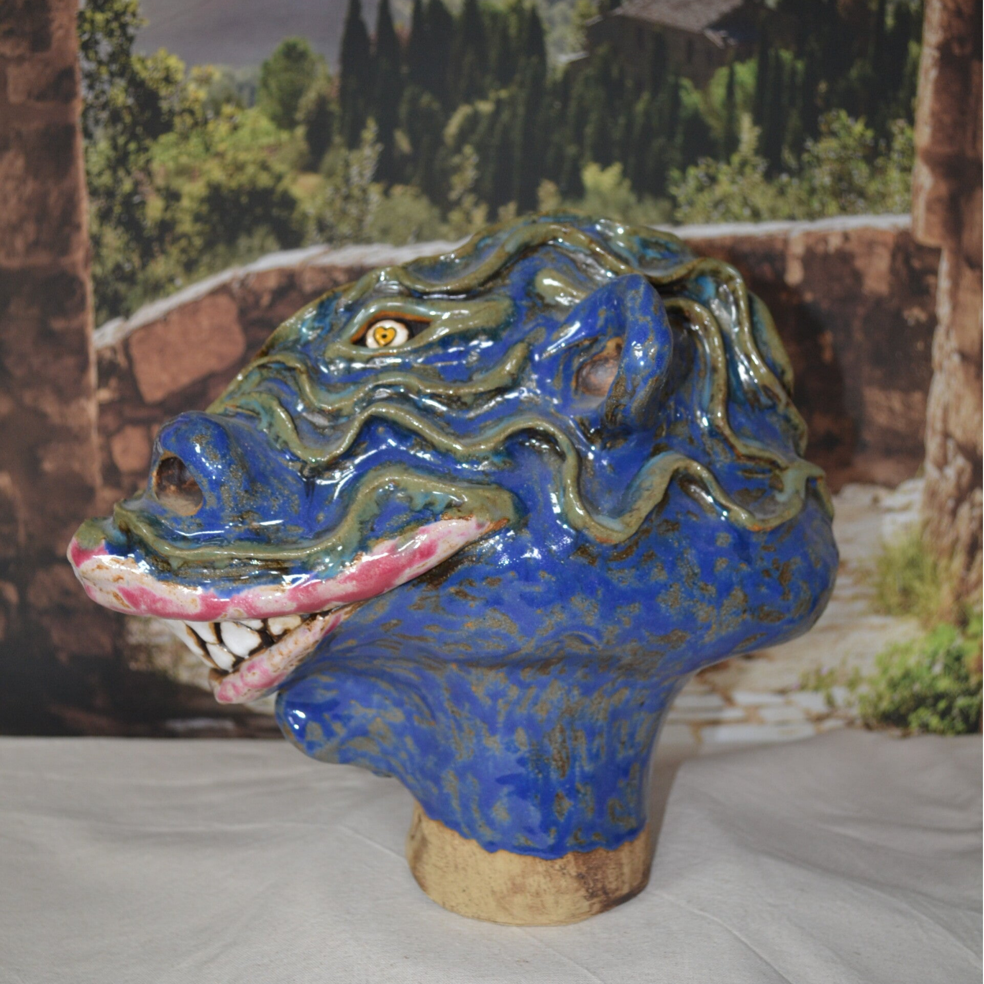 Sie werden immer größer meine Drachenköpfe. Ohne das ich das bewusst will. Annar ist bisher der Größte, und noch größer geht auch nicht, denn das sprengt dann die Kapazität meines Ofens. Er ist auch schwer. Meine Küchenwaage zeigt Error, ich schätze ihn auf 7 Kg.